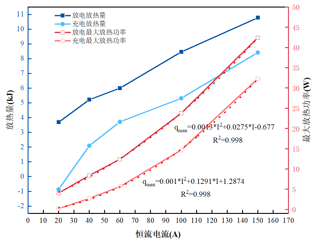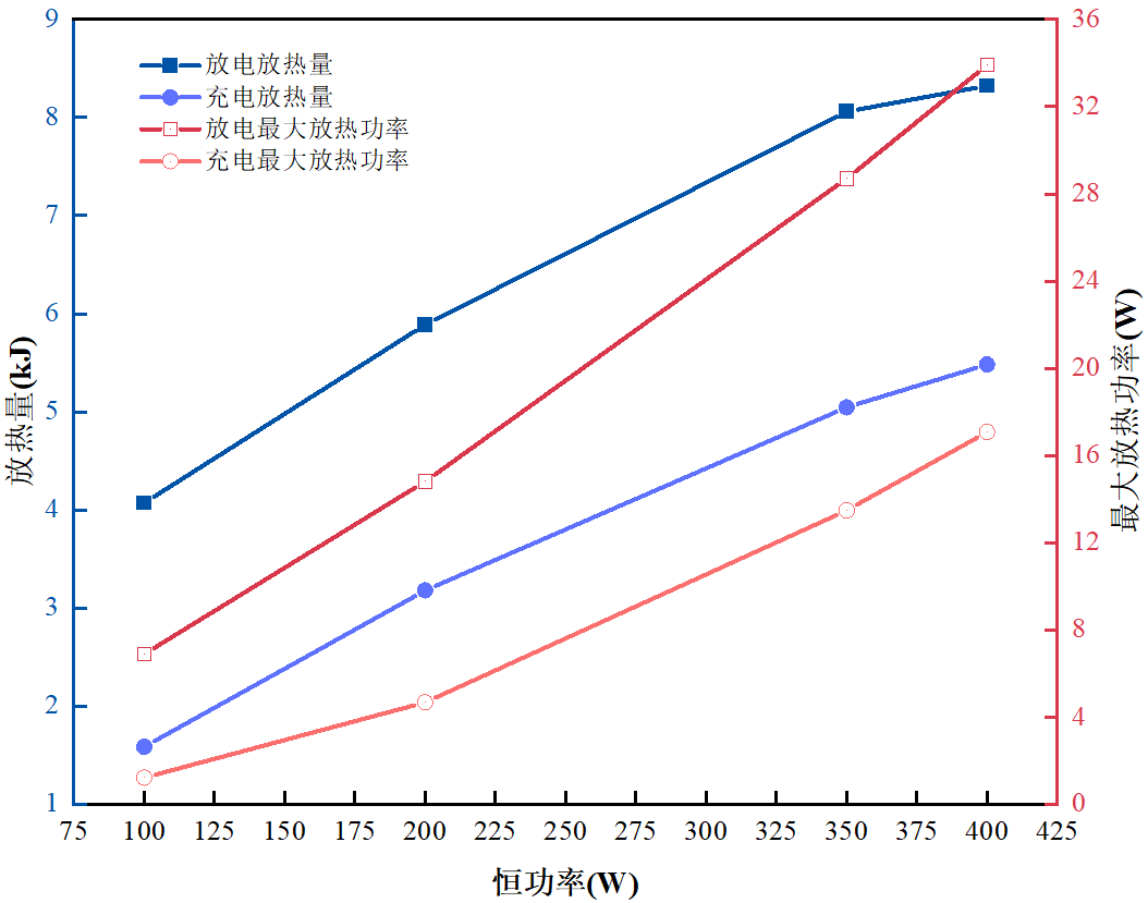 本文利用仰儀科技等溫量熱儀(BIC-400A)測(cè)定了鋰離子電容器在恒流放電、恒流恒壓充電以及恒功率充放電工況下的產(chǎn)熱特性,并基于產(chǎn)熱功率曲線計(jì)算得到Q和qmax等數(shù)據(jù)。相關(guān)結(jié)果有助于驗(yàn)證或改進(jìn)針對(duì)LIC的熱管理策略,確保LIC的性能發(fā)揮和使用安全。