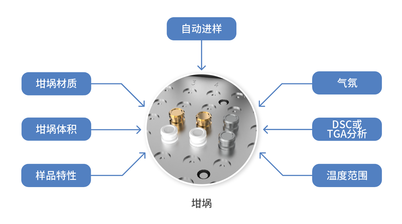 坩堝選擇考慮的因素眾多,包括坩堝體積、坩堝使用溫度、坩堝材質(zhì)等,選擇適合的坩堝可幫助取得理想的測(cè)量結(jié)果[1-2]。