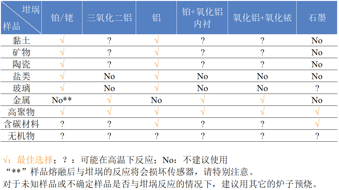 表1 不同樣品種類對(duì)坩堝選型的影響[1-2]
