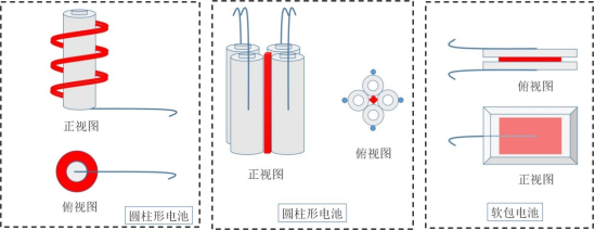 GB/T 36276-2018和 UL 9540A:2018觸發(fā)電芯熱失控的方法均為加熱法[2]。UL 1973:2018除采用外部加熱法外,提供了多種觸發(fā)熱失控方法,包括內(nèi)部缺陷類:導電污染物、隔膜破壞、內(nèi)部加熱器;外部應力類:外部加熱器、擠壓機制、針刺、短路、過充。