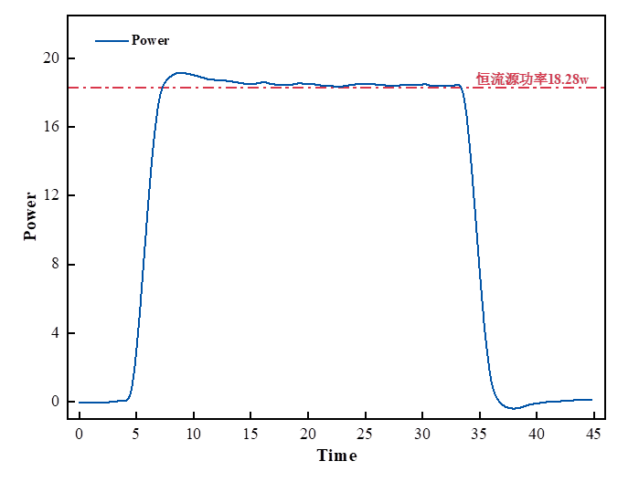 恒流源控制電阻塊輸出恒定功率或者程序改變功率輸出(參考電池真實(shí)充放電產(chǎn)熱曲線),隨后將測(cè)量值與輸入值進(jìn)行對(duì)比,獲得儀器測(cè)量準(zhǔn)確性驗(yàn)證結(jié)果。