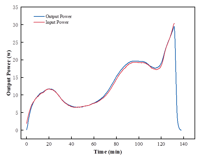 下面我們利用校準(zhǔn)裝置模擬電池真實(shí)的充放電產(chǎn)熱特征曲線,并進(jìn)行儀器性能驗(yàn)證。觀察圖4發(fā)現(xiàn),儀器測(cè)定的產(chǎn)熱功率曲線變化趨勢(shì)與恒流源輸出功率曲線幾乎完全重合,且樣品產(chǎn)熱量的測(cè)量誤差小于1.5%,證明BIC-400A電池等溫量熱儀能夠有效表征充放電過(guò)程電芯產(chǎn)熱隨SOC變化規(guī)律,并具備優(yōu)異的量熱準(zhǔn)確性。