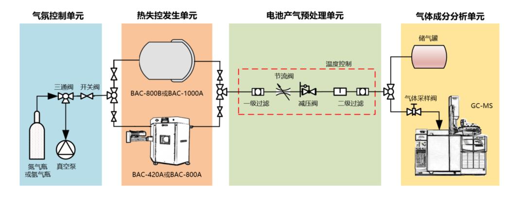 鋰電池?zé)崾Э厥且l(fā)起火、爆炸等安全事故的關(guān)鍵因素。在熱失控過程中,電池內(nèi)部會(huì)發(fā)生復(fù)雜的化學(xué)反應(yīng),不僅會(huì)釋放出大量熱量,還會(huì)產(chǎn)生諸如一氧化碳(CO)、氫氣(H?)、甲烷(CH?)等可燃?xì)怏w。這些氣體若在密閉環(huán)境中不斷積聚,極易引發(fā)二次燃燒或爆炸,進(jìn)一步加劇事故的危害程度。因此,精確量化電池?zé)崾Э剡^程中的產(chǎn)氣量、產(chǎn)氣速率以及氣體成分,成為評(píng)估電池安全性的重要指標(biāo)。